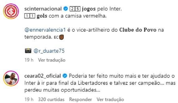 "Poderia ter feito muito mais e ajudado o Inter a ir para a final da Libertadores e talvez ser campeão. Mas perdeu muitas oportunidades”, comentou o ex-jogador, que foi campeão do Mundial de 2006 pelo Internacional", pontuou. Contratado no meio do ano, Enner soma 25 jogos pelo Inter e 11 gols.