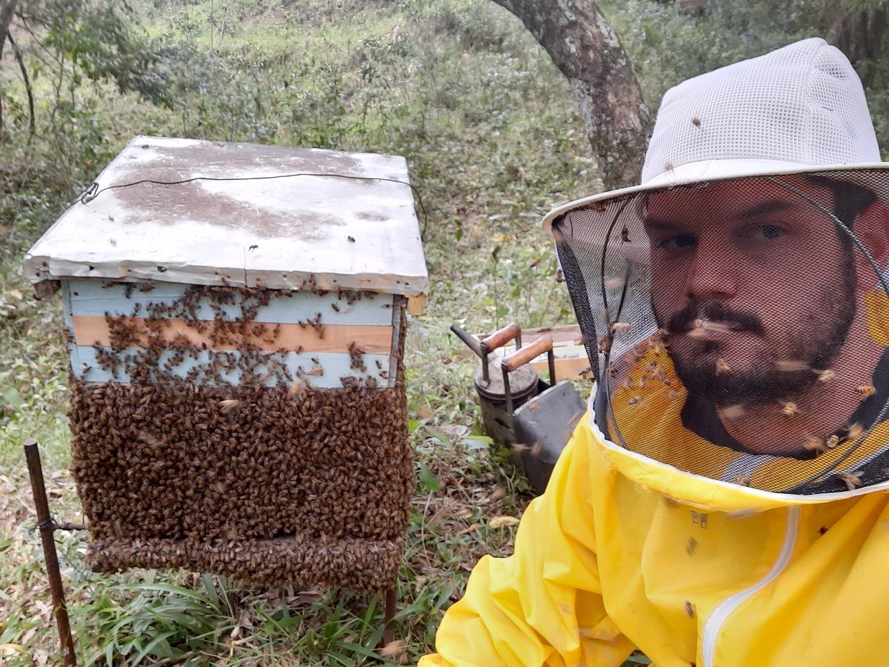 O eletrotécnico Leonardo de Oliveira, de Santa Maria, começou a se aventurar na apicultura há cerca de seis anos, pensando inicialmente em cultivar um hobby. A ideia de trabalhar com méis monoflorais surgiu ao longo de um curso de empreendedorismo realizado na Universidade Federal de Santa Maria (UFSM). Ao final do Programa de Pré-Incubação da Agência de Inovação e Transferência de Tecnologia (Agittec) da universidade, seu projeto não foi selecionado para a criação de um negócio, mas, com o conhecimento adquirido, ele decidiu investir na apicultura migratória, modalidade em que os produtores transportam as colmeias para diferentes locais de floração.