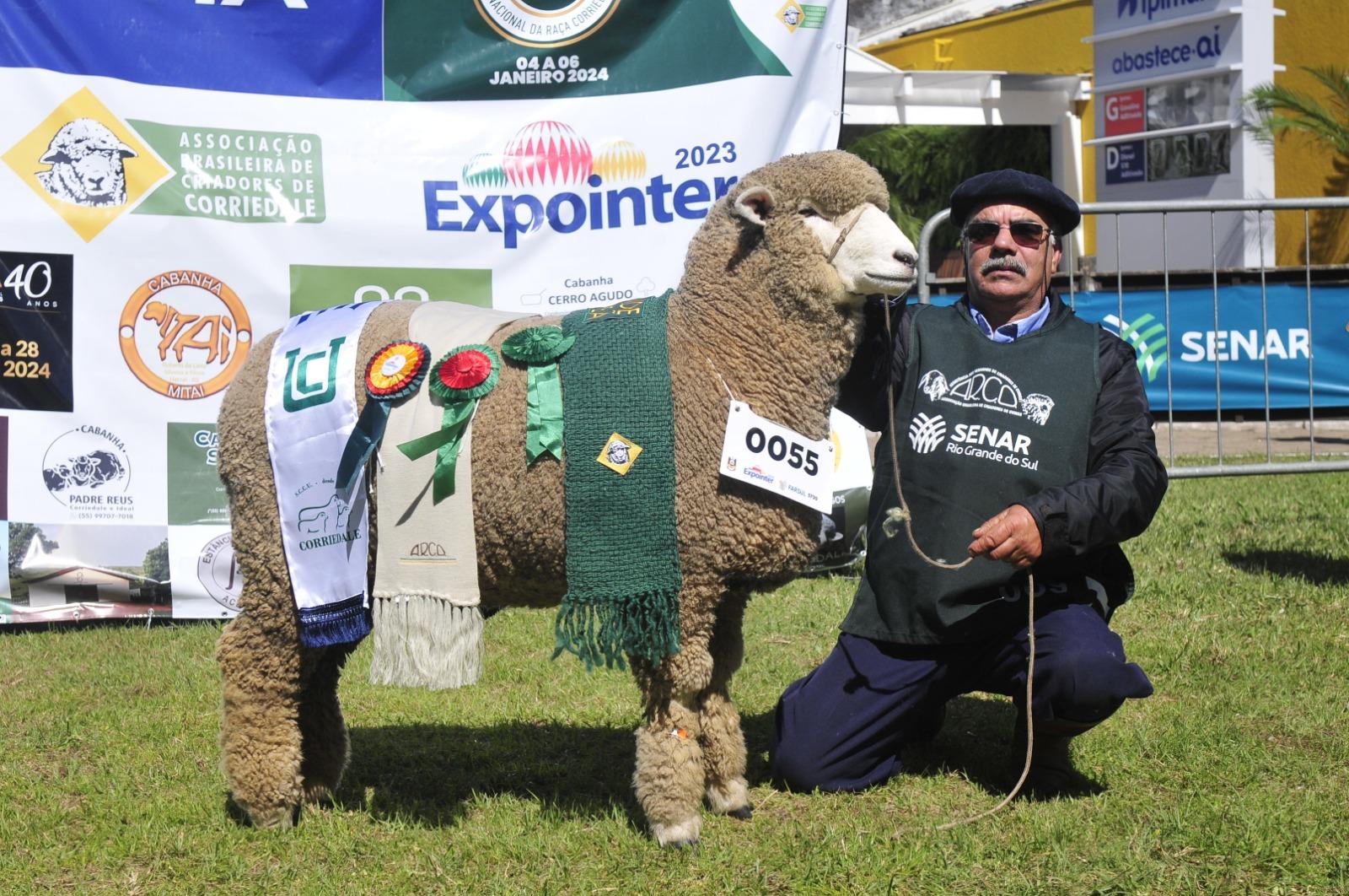 Com 94 quilos, Burity 5730 (box 55) sagrou-se Grande Campeã entre as fêmeas da raça Corriedale nesta segunda-feira. O animal, nascido em julho de 2022, pertence ao criador José Inácio de Andrade Freitas, da Cabanha Estância Escondida, de Alegrete.