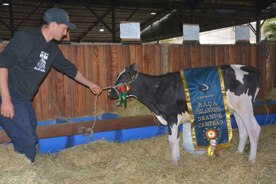 Foi definida na tarde desta sexta-feira o julgamento da Campeã Fêmea Jovem da raça Holandesa, título que ficou com a Box 289-Theruel Ramona Doorman. A bezerra intermediária é do expositor Leonardo Veiga Acosta, de Eldorado do Sul e tem 13 meses de idade. É a primeira conquista em um campeonato da raça. O campeonato bezerro ficou com o Box 257-Tang Sonar Meridian, da fazenda Granja Tang, de Farroupilha.