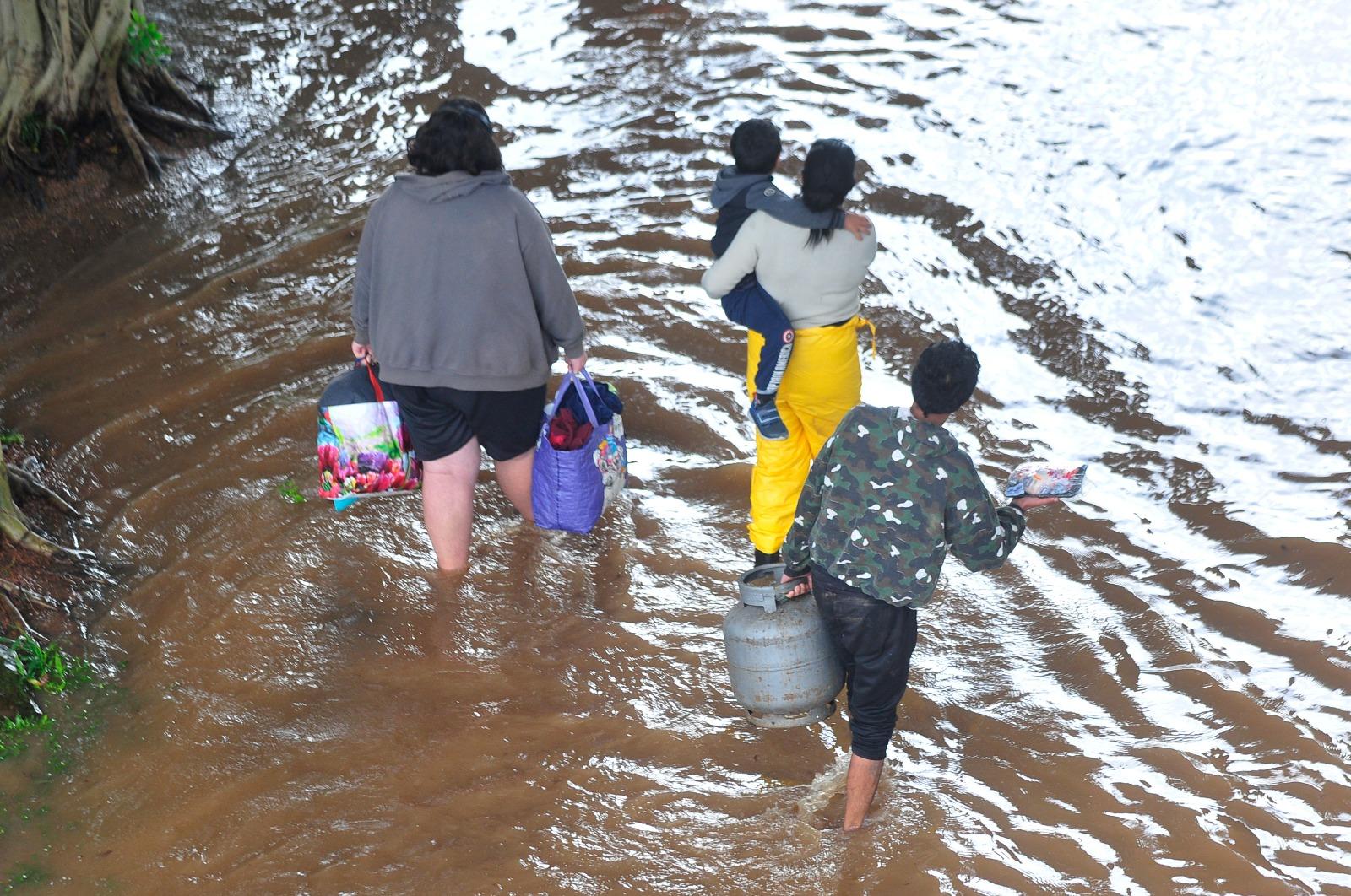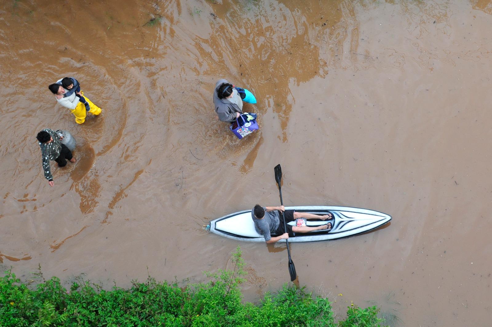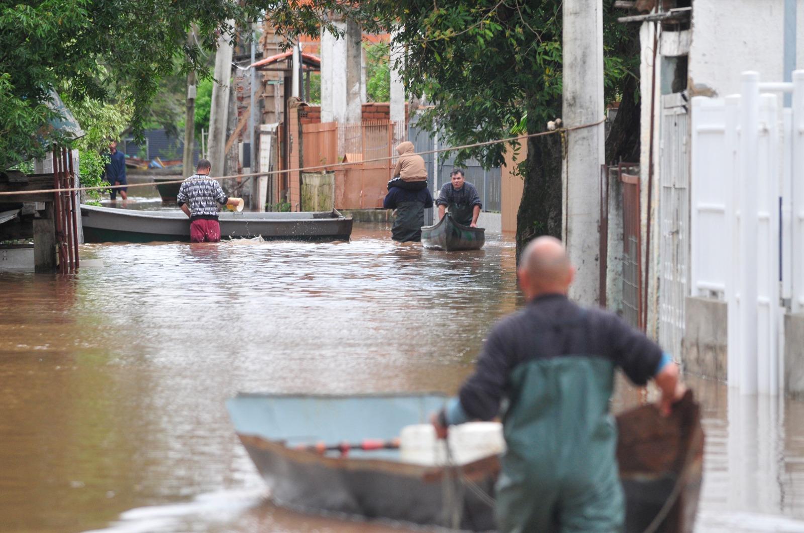 Já na Ilha das Flores, o agricultor Robson Alves, de 27 anos, atravessava as ruas alagadas em um caiaque. "A água passou do joelho", afirmou ele. A industriária Katiane Raiter, de 48 anos, moradora da rua 3, afirmou que algumas pessoas já haviam saído da localidade. “Por enquanto ainda não precisei deixar minha casa, mas há vizinhos que já foram embora, por precaução”, destacou.