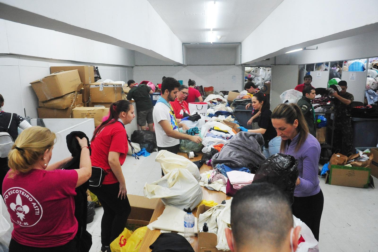 Além de soldados da força terrestre e cidadãos comuns, quem participa ativamente dos trabalhos são escoteiros e integrantes dos cursos de preparação dos Bombeiros. “É muito legal ver a solidariedade do povo gaúcho. A prefeitura de Xangri-Lá, por exemplo, levou para Roca Sales seis caminhões de doações. Quando cheguei aqui, vi que o espaço está lotado de roupas doadas entre quinta-feira e sexta. Ali vi que o povo se uniu para ajudar os nossos irmãos e estamos dando um show de solidariedade”, destacou Matheus Costa de Souza, de 24 anos, coordenador do oitavo distrito dos Escoteiros no RS, na zona Sul de Porto Alegre.