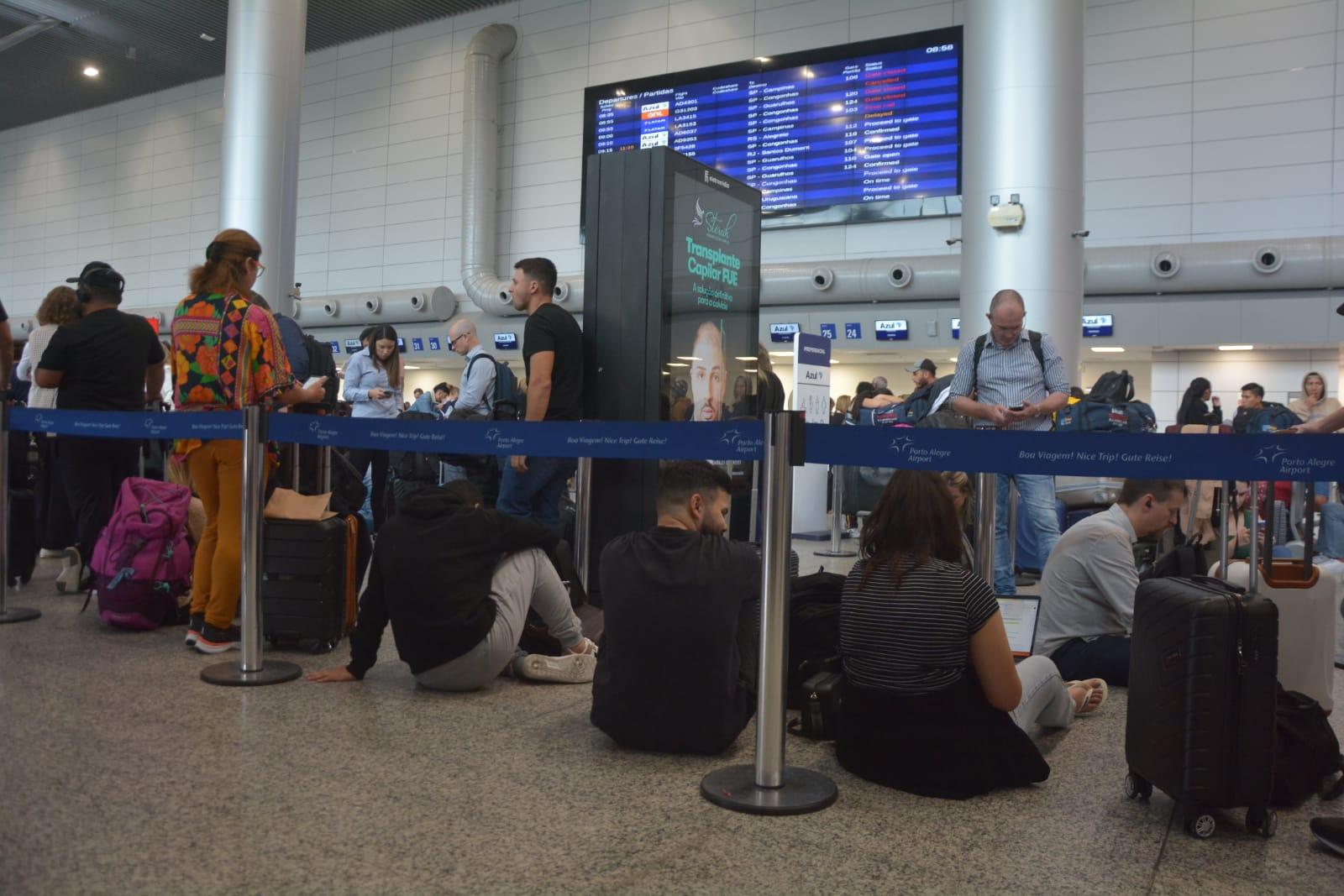 O Aeroporto Internacional Salgado Filho, em Porto Alegre, registrou grandes filas na área de embarque doméstico na manhã desta terça-feira. Passageiros com voos da Azul marcados para diversas cidades do país aguardaram horas na fila, lotando o saguão do local, e ainda reclamaram da falta de assistência da companhia. Alguns deles esperavam informações sentados no chão do terminal.