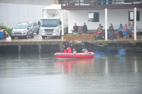 Sob chuva, Bombeiros fazem buscas por pessoas desaparecidas no rio Mampituba na manhã desta segunda-feira, após a queda de uma ponte pênsil que liga as cidades de Torres (RS) e Passo de Torres (SC). Ao menos 16 pessoas ficaram feridas no acidente. A estrutura, de acordo com as autoridades locais, estava suportando 100 pessoas no momento da queda. A capacidade é de 20, no máximo.