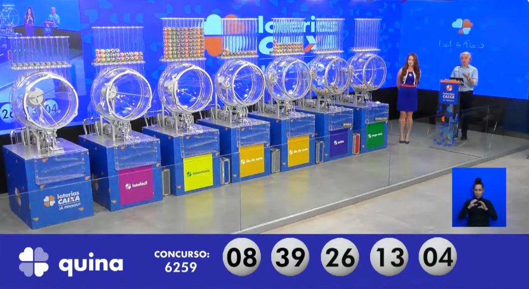 O concurso 6.259 da Quina com prêmio estimado em R$ 1.500.000,00 teve os seguintes números sorteados: