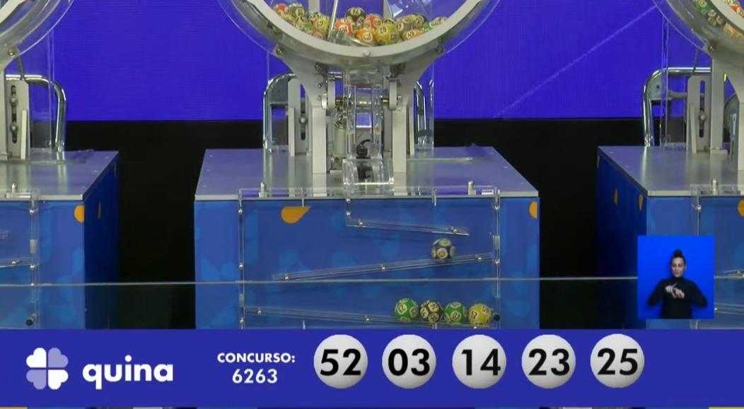 O concurso 6.263 da Quina com prêmio estimado em R$ 5.500.000,00 teve os seguintes números sorteados: