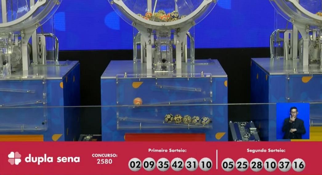 O concurso 2.580 da Dupla Sena com prêmio estimado em R$ 5.400.000,00 teve os seguintes números sorteados: