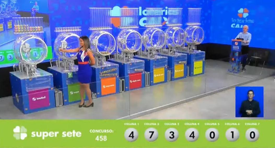 O concurso 458 da Super Sete com prêmio estimado em R$ 6.600.000,00 teve os seguintes números sorteados: