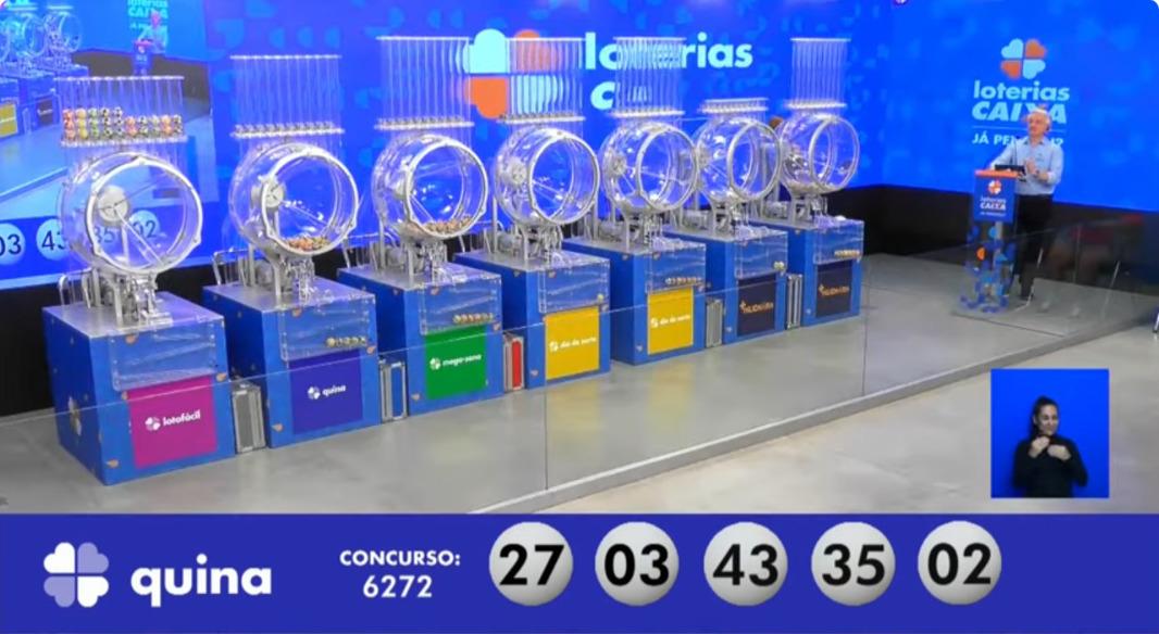 O concurso 6.272 da Quina com prêmio estimado em R$ 7.400.000,00 teve os seguintes números sorteados: