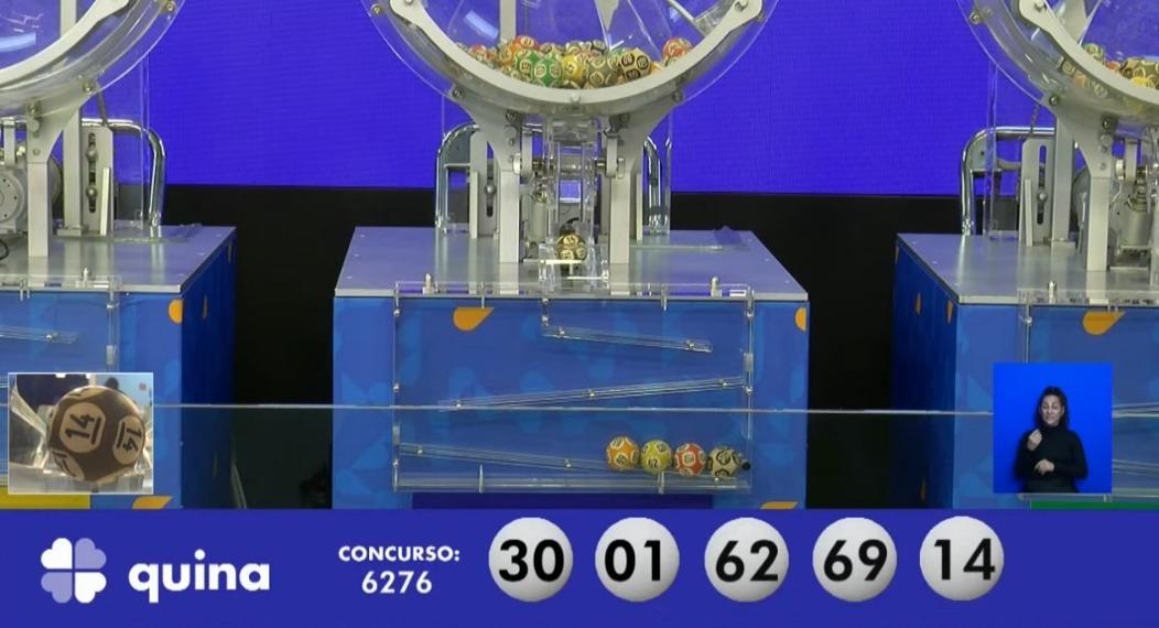 O concurso 6.276 da Quina com prêmio estimado em R$ 800.000,00 teve os seguintes números sorteados: