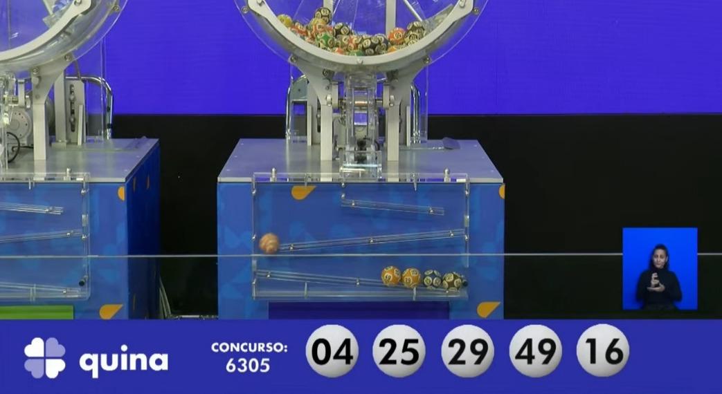 O concurso 6.305 da Quina com prêmio estimado em R$ 4.300.000,00 teve os seguintes números sorteados: