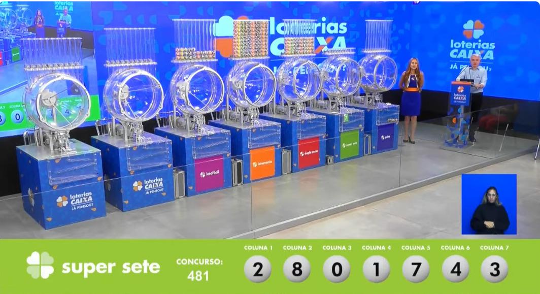 O concurso 481 da Super Sete com prêmio estimado em R$ 1.000.000,00 teve os seguintes números sorteados: