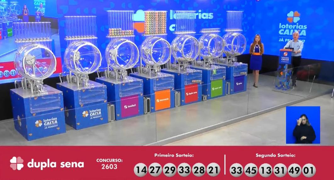O concurso 2.603 da Dupla Sena com prêmio estimado em R$ 2.700.000,00 teve os seguintes números sorteados: