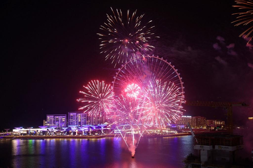 Na Expo 2020, a feira mundial inaugurada com um ano de atraso devido à covid-19, as comemorações começaram à tarde e está previsto que continuem até o dia do Ano Novo.