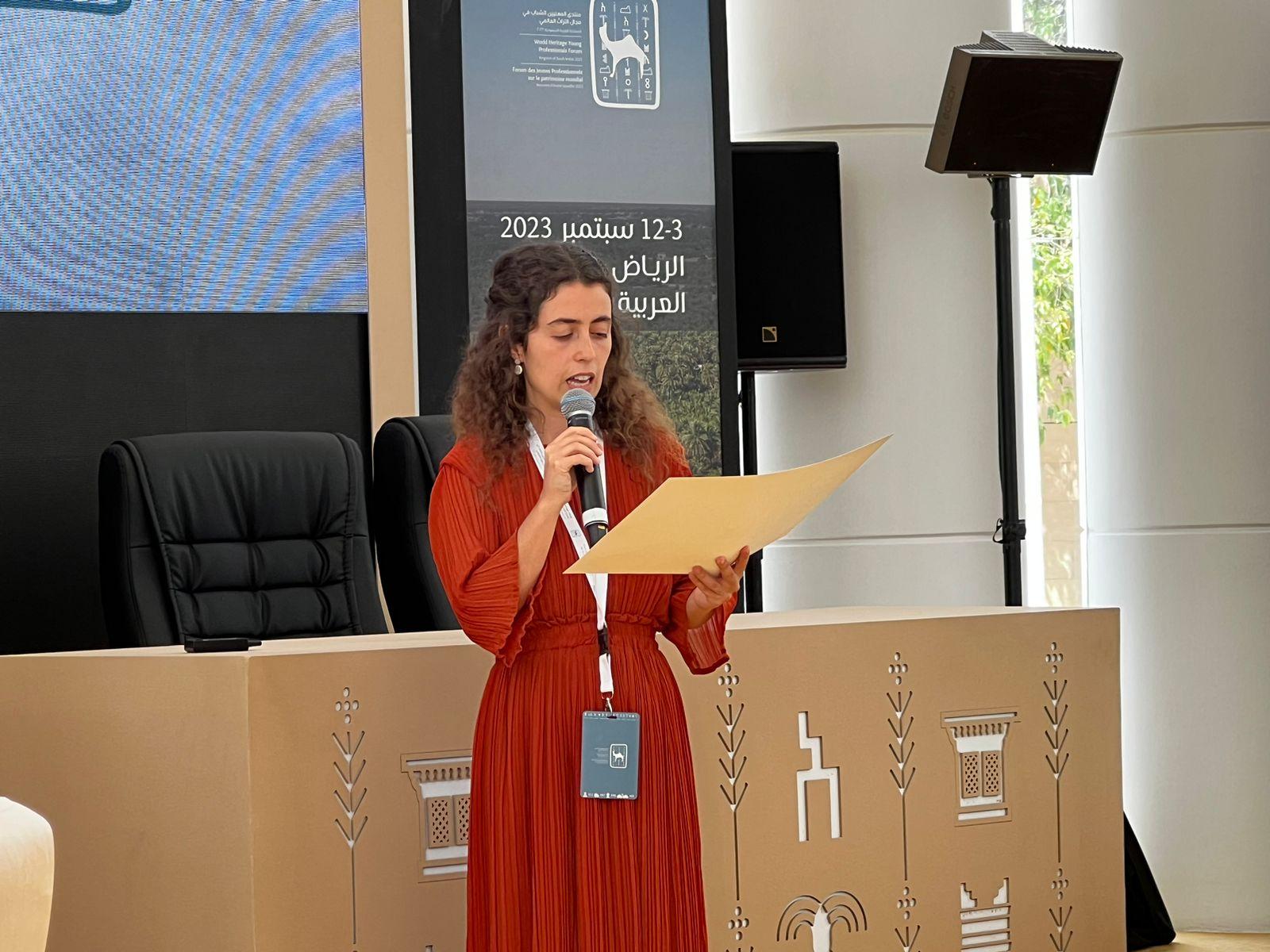 Um dos desdobramentos foi um projeto que a gente desenvolveu sobre o oásis, relacionado ao tópico de documentação digital. A gente foi para o oásis já com a ideia e lá coletou dados, entrevistas, o que fosse necessário para a ideia que a gente tinha. O meu grupo fez uma página no Instagram (@alahsatotheworld). Ficou muito legal, a gente fez muitas entrevistas com as pessoas do local sobre como eles viam o passado, o presente e o futuro da região e das pessoas que estavam lá. Cada grupo fez algo, alguns fizeram óculos de realidade virtual, outros fizeram sites ou mapas interativos com a intenção de trazer a tecnologia para esse mundo, para que as pessoas, principalmente os jovens, consigam também se inteirar das questões de conservação. Isso porque geralmente (esse tema) fica muito entre pessoas mais velhas, que têm interesse e acesso a isso. O segundo resultado foi uma declaração feita nos dois últimos dias sobre tudo o que a gente estudou, porque havia palestras, mas também atividades nas quais a gente conseguia expressar nossa opinião sobre o tópico que estava sendo abordado. E sempre havia pessoas com diferentes pontos de vista falando, então houve várias conversas e debates. No último dia, quatro pessoas do grupo foram escolhidas para compilar tudo que foi falado, nossas ideias para o futuro da conservação, em uma declaração. Essa declaração foi apresentada na abertura do evento que começou na semana seguinte. A gente apresentou essa declaração em um auditório com todos os representantes de todos os países participantes. O documento foi lido nessa cerimônia, no primeiro dia do encontro do World Heritage Committee, e também fomos para o palco e recebemos um certificado.