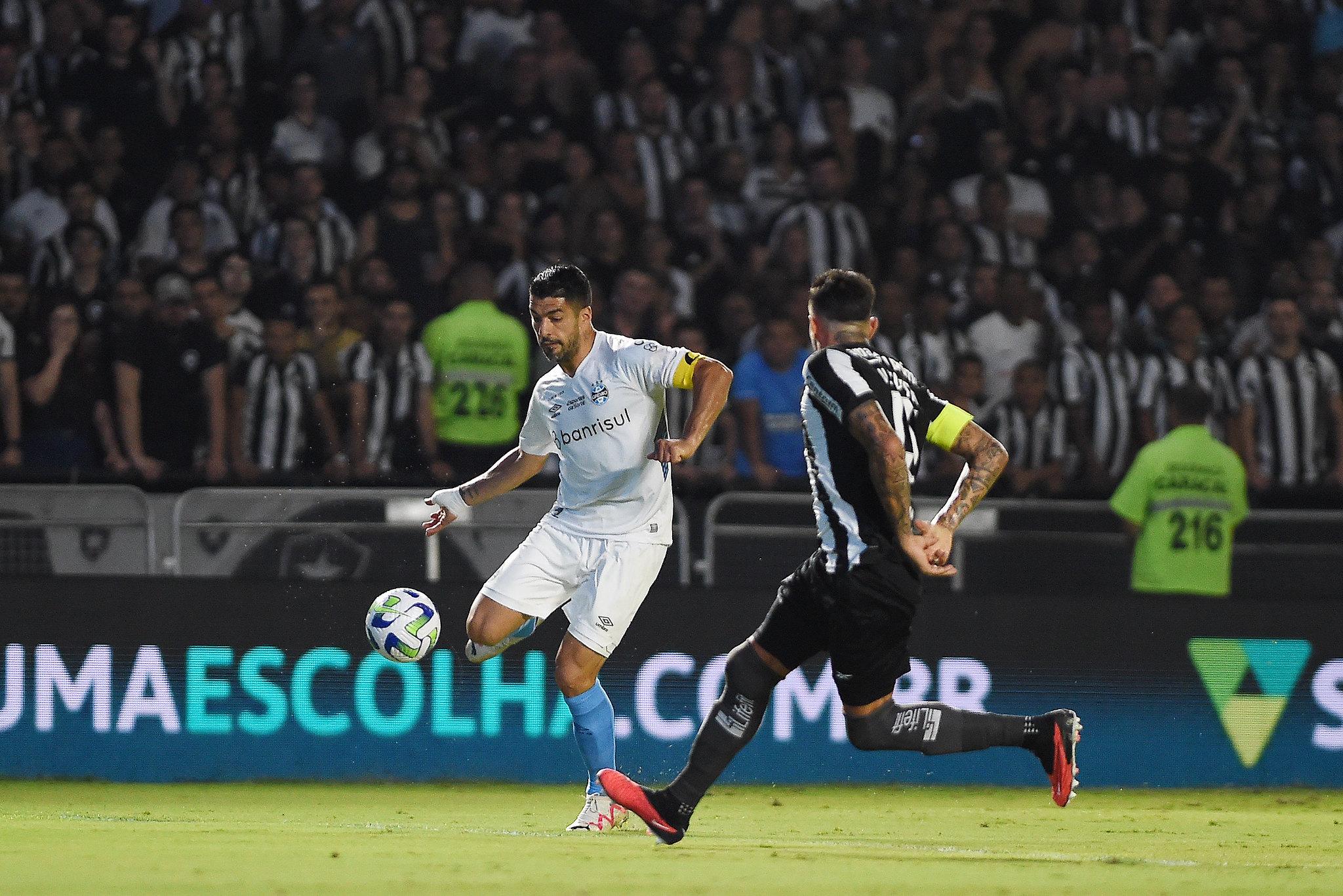 Botafogo e Grêmio realizaram um jogaço. O Fogão fez 1 a 0, levou o empate, abriu 3 a 1 e ele, Suárez, desempatou com três gols no segundo tempo: aos 4 minutos, aos 8 e aos 23. Suárez, sozinho, desmontou o rival. É, disparado, o melhor jogador do campeonato. É o terceiro artilheiro do Brasileiro com 13 gols.