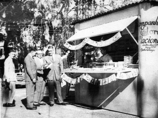 Primeira Feira do Livro de Porto Alegre, em 1955: Em 1955 foi realizada a primeira Feira do Livro de Porto Alegre, resultado do engajamento de pessoas com o desejo de incentivar a leitura. Foto: CP Memória
