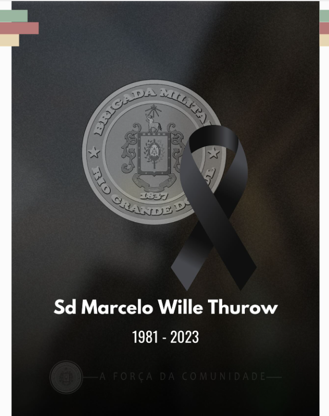 É com imenso pesar que a Brigada Militar comunica o falecimento do soldado Marcelo Wille Thurow, aos 42 anos, nesta quinta-feira (31/8).