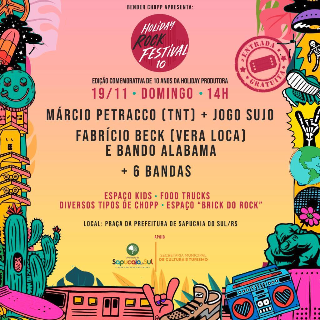 Neste domingo, dia 19 de novembro, a partir das 14h, acontece o Holiday Rock Festival, narcando os dez anos de existência da produtora. O evento acontece em Sapucaia do Sul, em frente à Prefeitura da cidade da Grande Porto Alegre, na Avenida Leônidas de Souza. A entrada é gratuita.