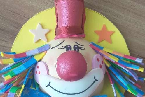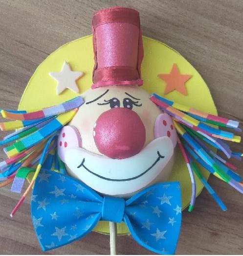 Liliane: Quando eu estava cursando o 1º Grau, tive a disciplina de Técnicas Domésticas, em que aprendi a bordar ponto cruz e por muitos anos foi meu hobbie. Também aprendi a fazer cartões de papel vegetal, mas quando fui organizar a festinha de 1 ano do meu filho, eu queria fazer alguma coisa diferente. Na ocasião, pesquisando na internet, vi um lindo enfeite de mesa de palhacinho (foto abaixo), feito de "E.V.A" (Etileno Acetato de Vinila), então decidi saber como fazer, comprei os materiais, assisti a aula e fui fazendo, fiz 15 enfeites e todos os convites do aniversário, a partir daí não parei mais.