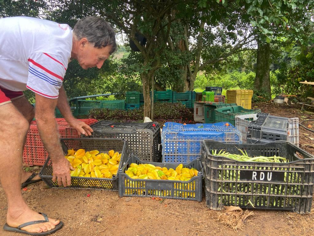 Piber, produtor da zona rural da Capital, já doou pepinos, vagens e frutas como a carambola | Foto: Camila Pessôa / Especial / CP.