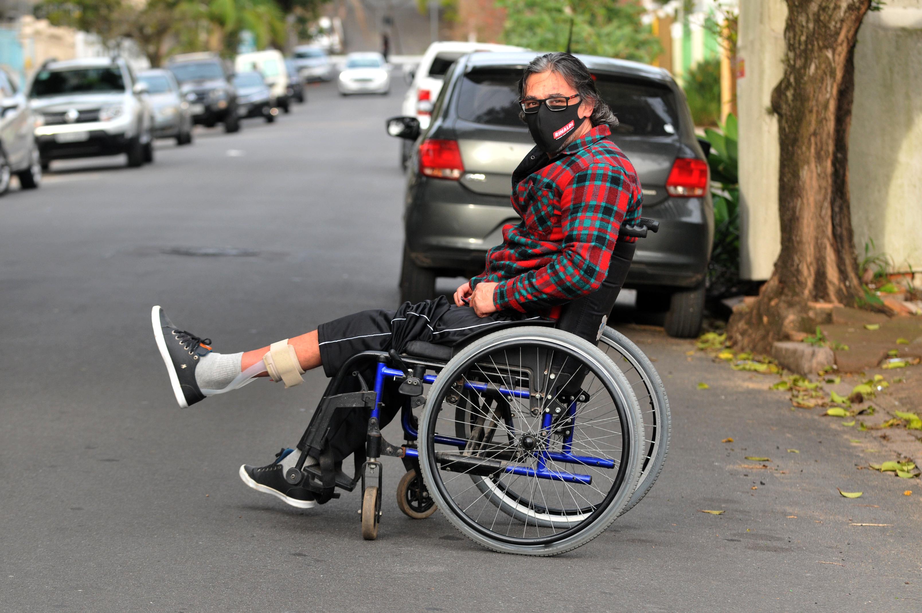 O projeto também mostra histórias como a do ex-motoboy Marcelo Felipe Corrêa, 48 anos, conhecido como Ninja. Muito do seu apelido decorria da velocidade com que coletava determinada encomenda para entregá-la o mais rápido possível. Mas um acontecimento, do qual lembra com detalhes, mudou sua vida. Ele não esquece o que se passou no dia 12 de fevereiro de 2018 às 10h30min. “Trabalhando, ao desviar de um veículo em movimento, fui tirar um ‘fino’ de um carro estacionado. A frente da moto passou, mas o bauleto (baú) bateu na quina desse automóvel e eu caí de mau jeito”, descreve. Neste exato dia, Ninja não estava com os EPIs adequados para a função, ele reconhece. Ficou dois meses no hospital e descobriu uma lesão na medula que o deixou em uma cadeira de rodas. “Vi a realidade cruel de voltar para o barraco”, relata. Após 18 anos fazendo serviços de tele-entrega, Ninja se confessa um “cachorro louco” na estrada. “Eu entrava no automático, achando que nunca sofreria um acidente. Caía, levantava, até que, uma hora, caí e não levantei mais”, conta. O ex-motoboy aconselha aos colegas que continuam na batalha diária, mas ainda acompanhados da imprudência. “Quer ficar na motinho? Fica, mas com consciência, meu galo. Perde um minuto da tua vida, mas não perde tua vida em um minuto”, ensina.