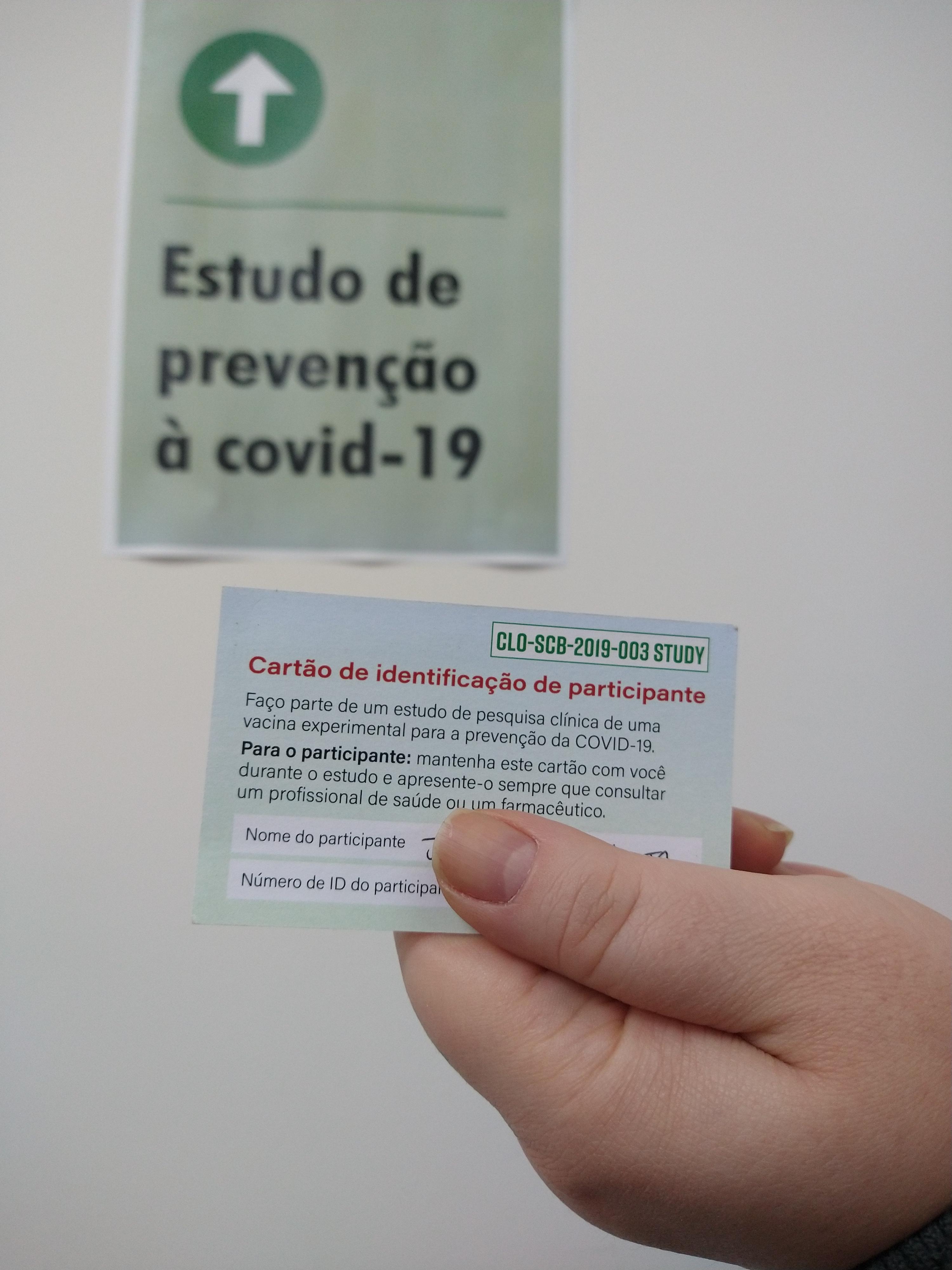 Caso os resultados sejam adequados, negativo para Covid-19 e gravidez e IMC normal, o voluntário é encaminhado para uma sala onde aguardará a randomização feita pelo computador, que definirá se irá receber a vacina ou placebo. Enquanto espera, a equipe da pesquisa mostra como usar um aplicativo de celular que será o diário de sintomas do voluntário durante o estudo. O participante é então levado para receber o imunizante ou o placebo e, na sequência, fica 30 minutos em observação, para garantir que não haverá reação adversa grave, como reações alérgicas. Caso esteja bem, é liberado. O voluntário recebe um kit com régua, termômetro e testes rápidos de Covid-19, que deverá fazer todas as semanas, junto do diário de sintomas, pelo resto do tempo do estudo. Ele pode desistir de participar do estudo a qualquer momento, antes, durante ou depois da primeira consulta. A segunda aplicação ocorre em tempo estipulado pela equipe do estudo, que pode variar. Após a segunda dose, são previstas outras três consultas de acompanhamento. Todos os participantes são ressarcidos, se assim desejarem, pelo valor que gastaram para comparecer ao hospital.
