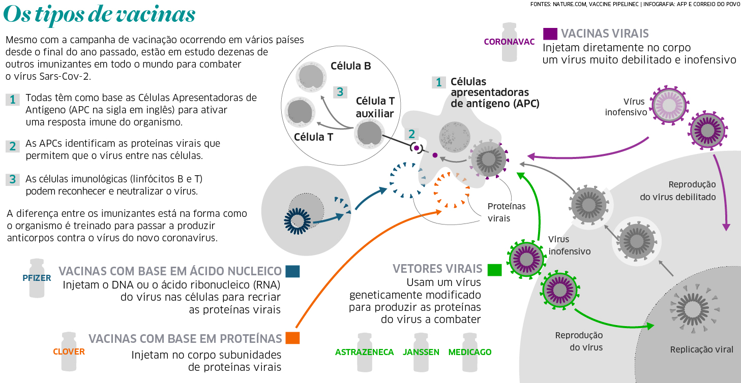 No Brasil, há quatro vacinas contra a Covid-19 sendo aplicadas pelo programa nacional de imunização (PNI): Coronavac, AstraZeneca, Pfizer e Janssen. Todas fizeram testes clínicos no Brasil, uma exigência da Anvisa para emitir autorização de uso no país. A fase 3 do teste da Coronavac, criada pela farmacêutica do grupo chinês Sinovac Biotech, foi conduzida no Brasil pelo Instituto Butantan em julho de 2020 e contou com 9 mil voluntários, todos profissionais da saúde, em cinco estados, entre eles o Rio Grande do Sul, e no Distrito Federal. O Hospital São Lucas da PUCRS foi o escolhido para ser o centro de pesquisa em Porto Alegre. A Unifesp conduziu o teste da AstraZeneca, da farmacêutica AstraZeneca em parceria com a Universidade de Oxford, em solo brasileiro. O estudo contou com 10 mil voluntários, também trabalhadores essenciais ligados à área da saúde, no RS e em outros três estados. Em Porto Alegre, o centro de pesquisa foi o Hospital de Clínicas de Porto Alegre (HCPA). Atualmente, a vacina é produzida no país pela Fiocruz. A vacina da farmacêutica Pfizer, em parceria com o laboratório BioNTech, também contou com o HCPA como centro de pesquisa. Cerca de 2,9 mil brasileiros foram voluntários durante a fase 3 do estudo, que ocorreu entre julho e novembro de 2020.