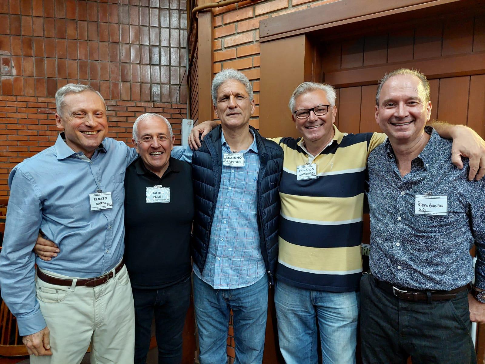 Renato Schilling Sardi, Mário Nasi, José Vinícius Jappur, Reinaldo Gabardo e Pedro Bins Ely estiveram na festa do Anchietanos