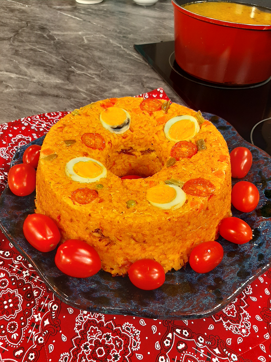 Montagem: Unte uma forma de pudim com óleo e farinha de trigo. Preencha os espaços com uma parte do risoto já frio, no centro livre coloque o recheio e a muçarela, finalize com restante do risoto por cima. Leve para assar em forno pré-aquecido a 200º até dourar.