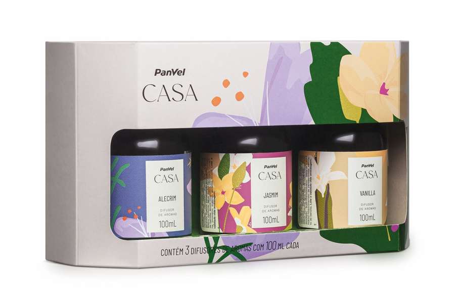 O Kit de Mini Difusores da Panvel Casa é um grande aliado na hora de incentivar um momento único de autocuidado. Contém três difusores de aromas nas fragrâncias alecrim, jasmim e vanilla. Preço sugerido: R$44,90