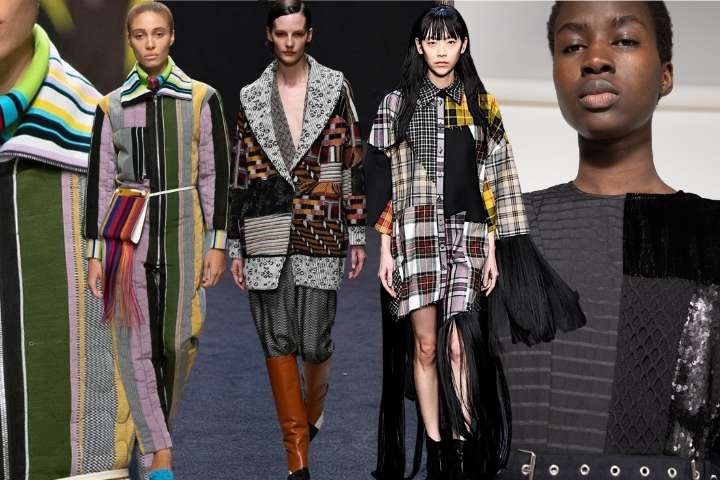 Repare que não é necessário criar uma estética de colcha de retalhos para se reaproveitar materiais. É possível trabalhar com um visual moderno. A proposta de sobreposição e camadas se torna muito forte, muitas vezes trazendo a ideia de que diferentes peças foram utilizadas para criar uma nova. Veja como este conceito foi utilizado para renovação do trend coat.